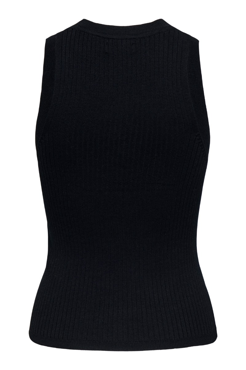 En super fin og helt nem top er landet fra JDY i denne klassiske sorte farve! Toppen her er i en ribbet kvalitet med en fin kant, og så er den ærmeløs. Den er super nem at have under en strik, og også virkelig god til det varmere vejr!