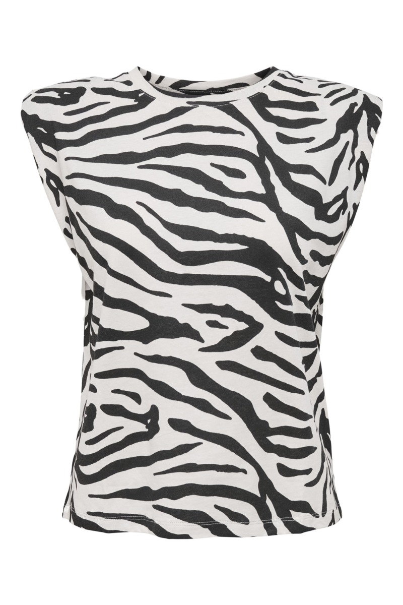 Vi kommer virkelig til at se meget til zebraprintet denne sæson! Denne top fra JDY har matchende shorts i samme mønster og er lavet i et dejligt behageligt materiale. Toppen har en løs pasform med skulderpuder der giver et cool look. Brug det sammen eller hver for sig.