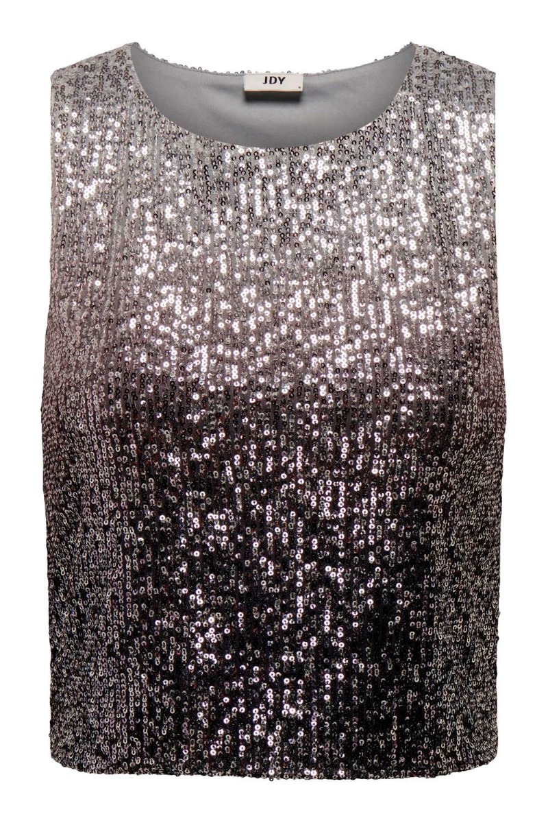 En smuk pailet top fra JDY i grå nuancer. Den er foret så den ikke kradser eller er gennemsigtig. Derudover er den let i materialet og kan sagtens sidde inden i en nederdel eller et par jeans. Der er også kommet en matchende nederdel hvis man vil have et sæt på.