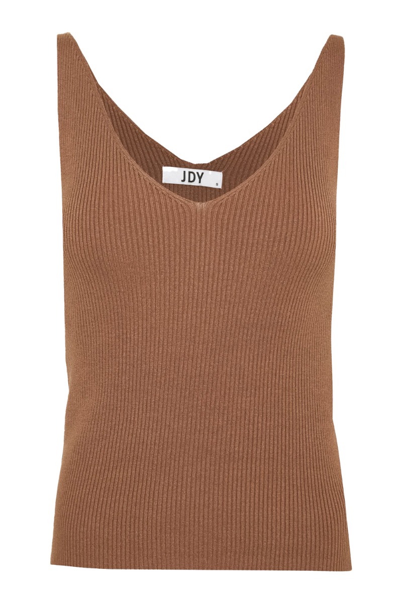 Den bedste sommer top fra JDY i en ny brun farve. Toppen er i tæt strikket ribkvalitet og kan derfor give sig en del. Vi har den i flere farver og vi må bare sige at den passer til alle jeans eller nederdele. Se også de andre fine farver vi har.