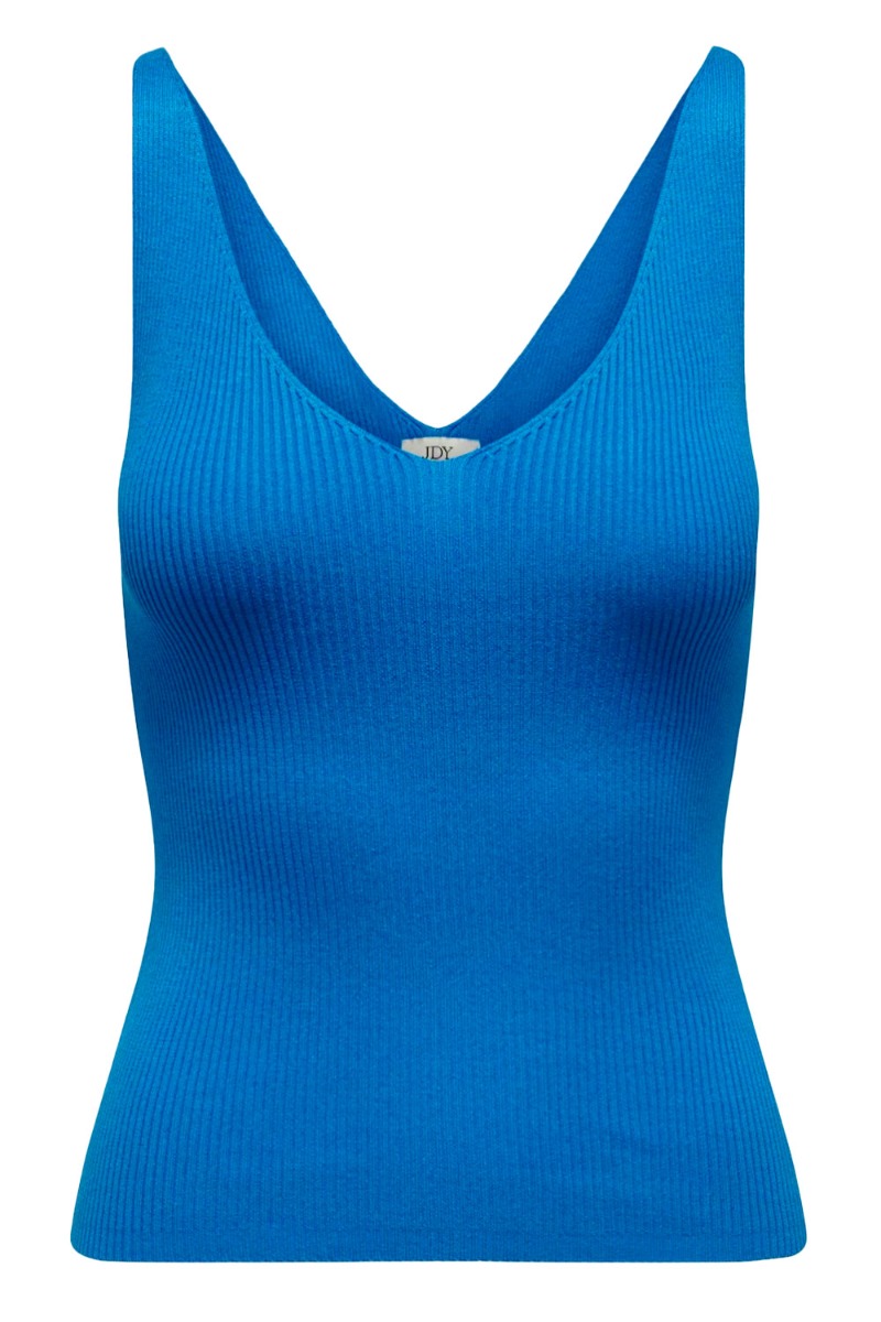 En god basis top fra JDY til en super pris, er kommet i en ny farve. Denne skarpe blå farve er fin til forår og sommer, hvor den er fin til et par shorts eller en nederdel. Den er findes i mange flere farver og er alle sammen i denne skønne rib kvalitet.