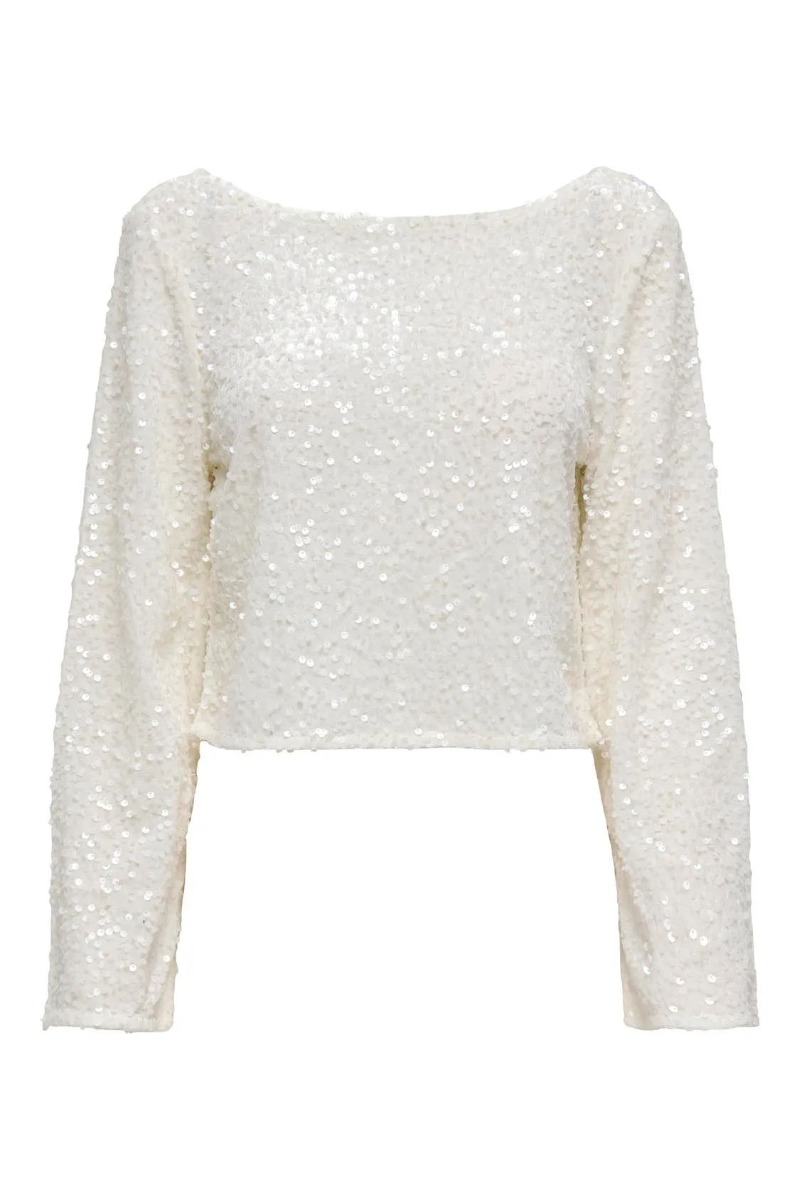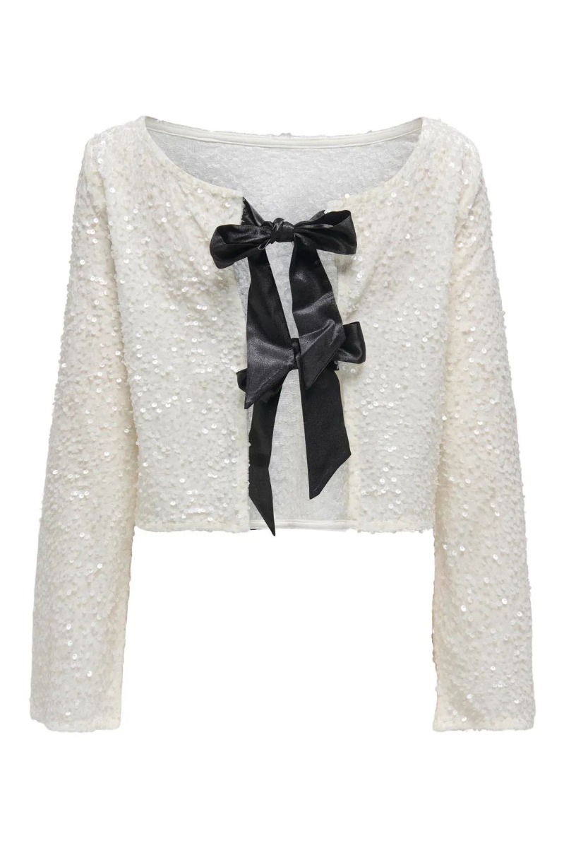 JDY - Top - Jdy - Sara L/S Bow Sequins Top - Cloud Dancer