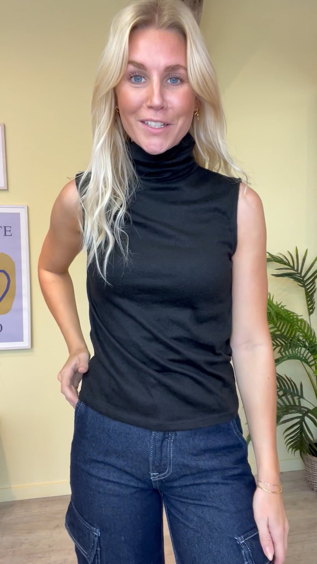 Denne top er super som en basis vare i dit skab. Den er i det blødeste materiale og fra JDY. Der er en rullekrave og ingen ærmer. Derfor er den også perfekt til at have under en blazer. Den findes i flere smukke farver.