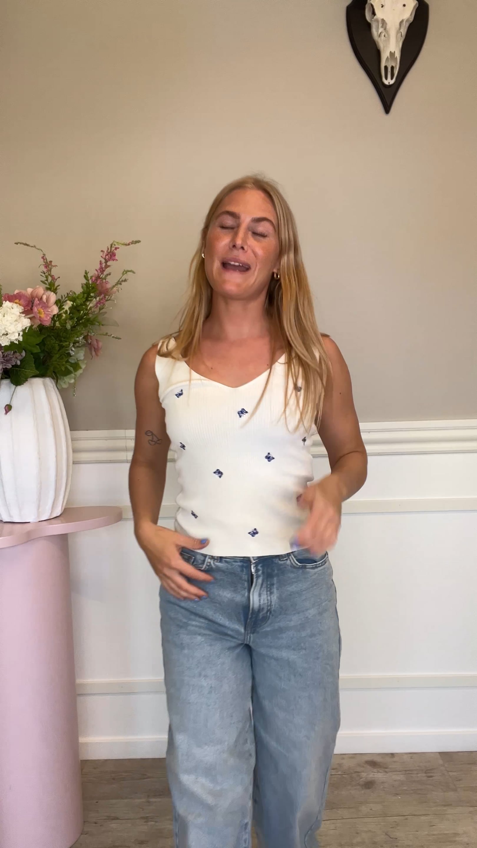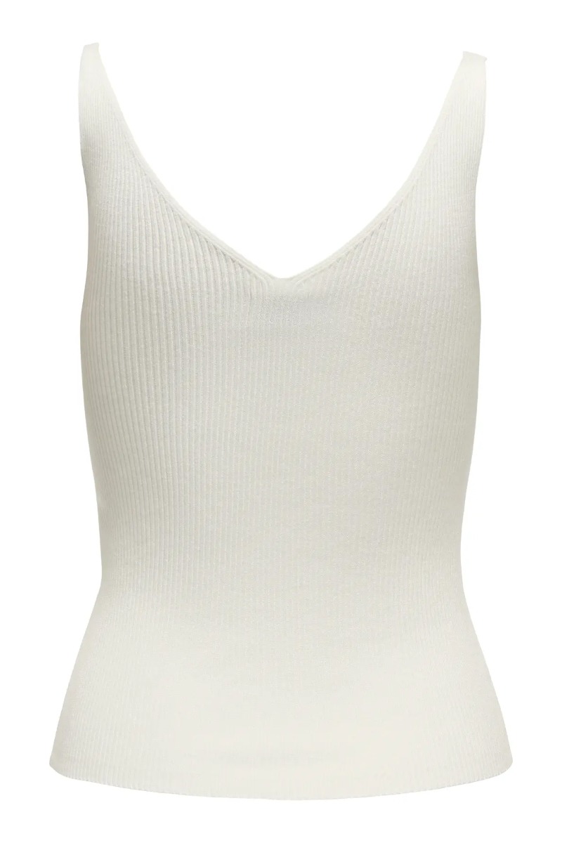 Lækker og behagelig basistop fra JDY. Toppen har en skøn tætsiddende pasform i et strækbart materiale. Den har en flot v-udskæring som er synlig både foran og bagpå. En basistop som kan bruges hele året rundt som sommertop eller undertrøje. Den er med fine sommerfulge broderier foran.