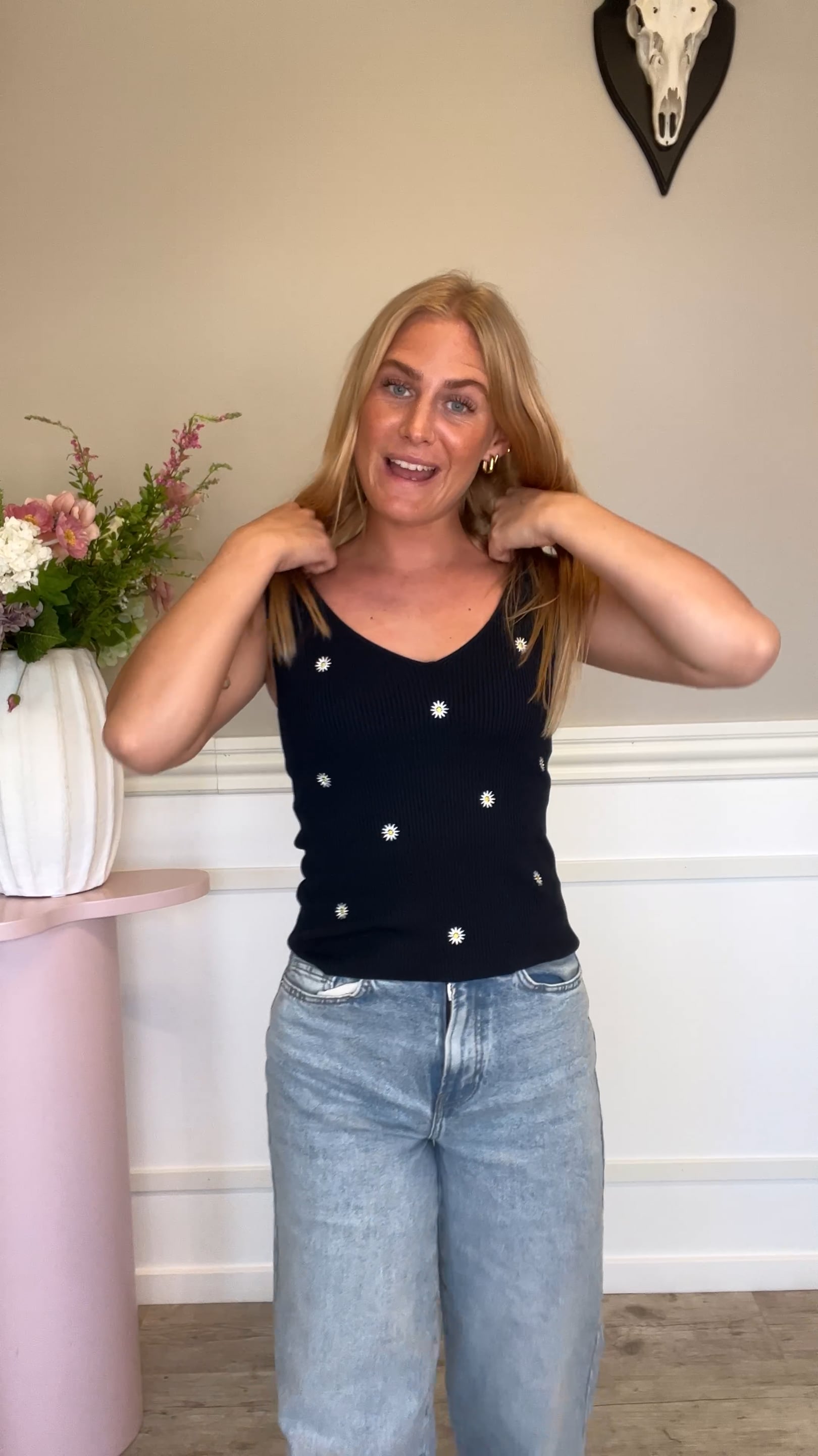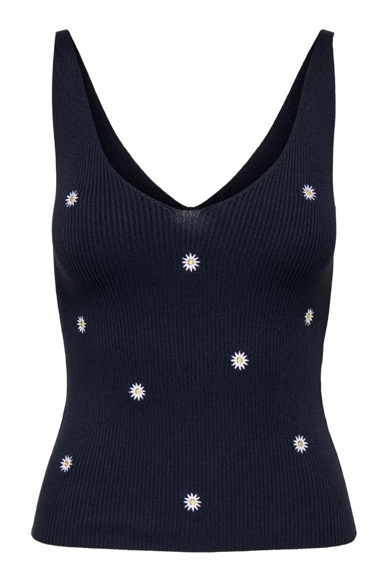 Lækker og utrolig blød og behagelig basistop fra JDY. Toppen har en skøn tætsiddende pasform i et strækbart materiale. Den har en flot v-udskæring som er synlig både foran og bagpå. En basistop som kan bruges hele året rundt som sommertop eller undertrøje. Den er med fine blomster broderier foran.