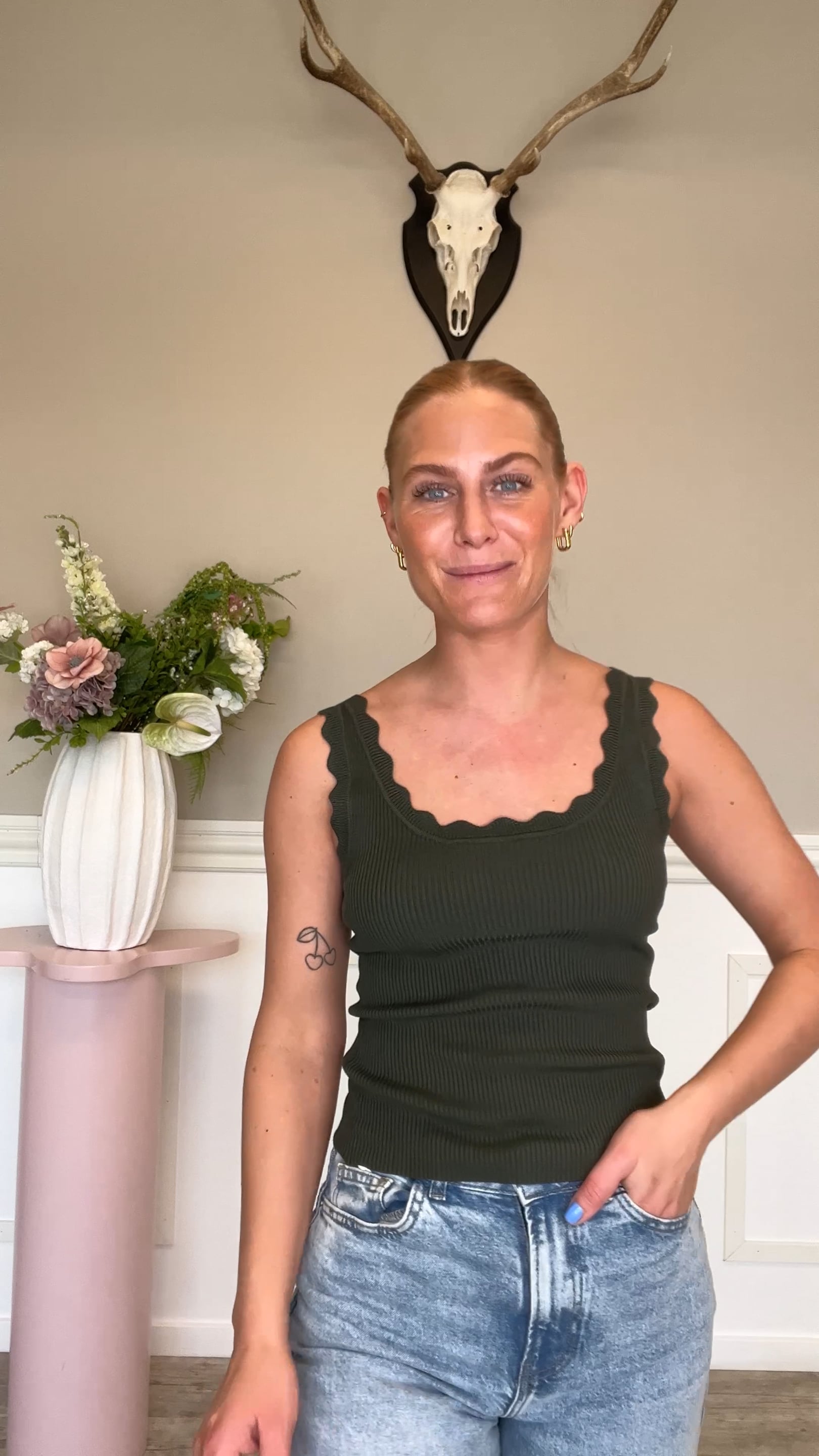 Top fra JDY. Denne top har en tætsiddende pasform i et behageligt, stretchy materiale som sikrer god komfort! Ved stropperne har buede detaljer, som giver et feminint pift. Brug den som en basis top under dit tøj eller med en sød nederdel/shorts til.