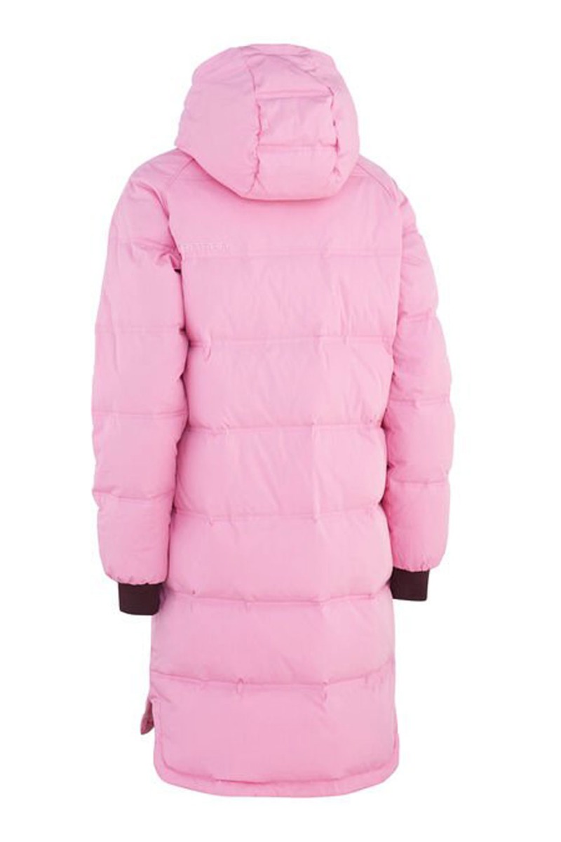 En dejlig varm dunjakke fra Kari Traa der er designet med stil. Jakken er pink med sort lynlås foran og monteret hætte. Den har en bred tætsiddende ribkant ved håndledder der holder kulden ude så den forbliver dejlig varm. Jakken er mellemlang og det perfekte valg til vinteren.