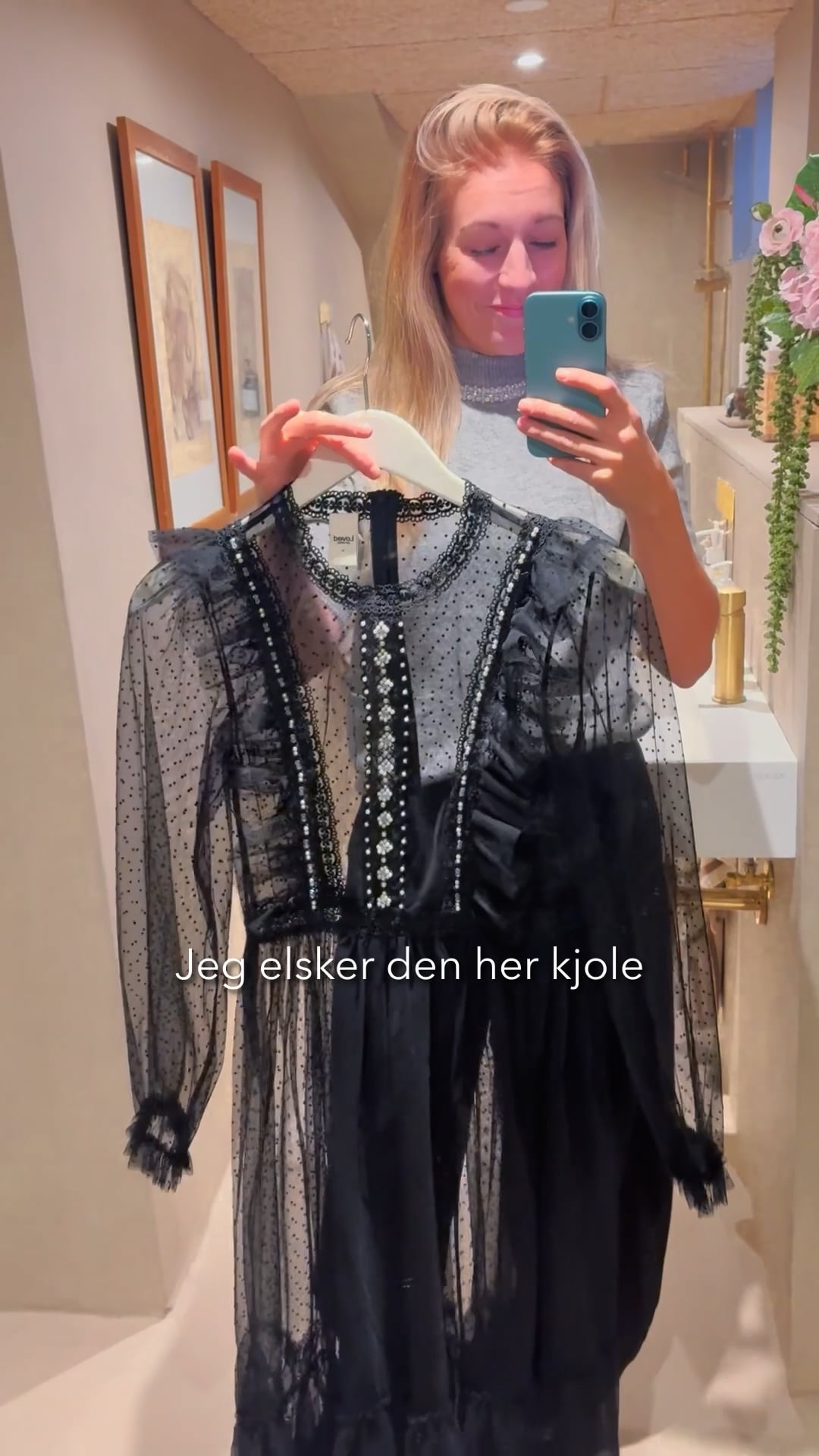 Simpelthen den smukkeste mesh kjole fra Loved by Lykke. Kjolen har de de fineste perledetaljer foran, som giver et stilet look. Der er transparente ærmer og "nederdel" med det sødeste prikkede mønster. Der er desuden flotte flæsedetaljer og en sort underkjole.