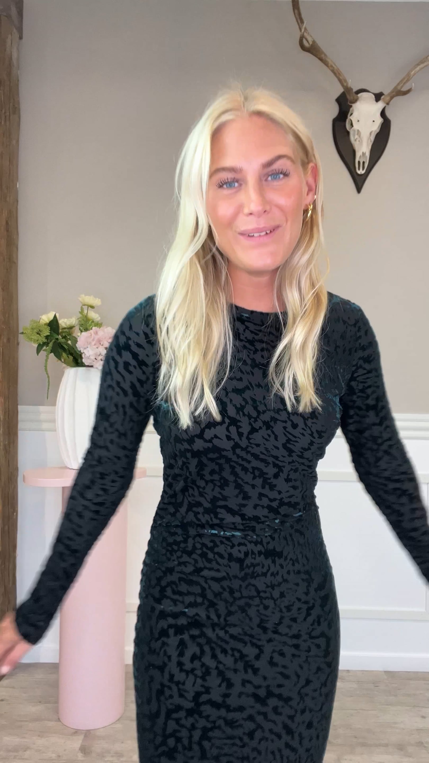 Vores populære Karina model fra Loved by Lykke, som vi ved, I elsker lige så højt, som vi selv gør! Nu lander den i den fine petroleumsfarve udgave - men med samme fine velourdetaljer og kvalitet. Kjolen er elegant, lang og sofistikeret – Karina Dress er kjolen, du tager på, når du vil føle dig ekstra lækker. Den har en flot struktur i stoffet, lange ærmer og et snit, der giver en smal silhuet. Den er let gennemsigtigt, så det vil være oplagt at style den med vores LOVED top, shorts eller heldragt under. Style den med et par høje hæle og du er klar til fest!