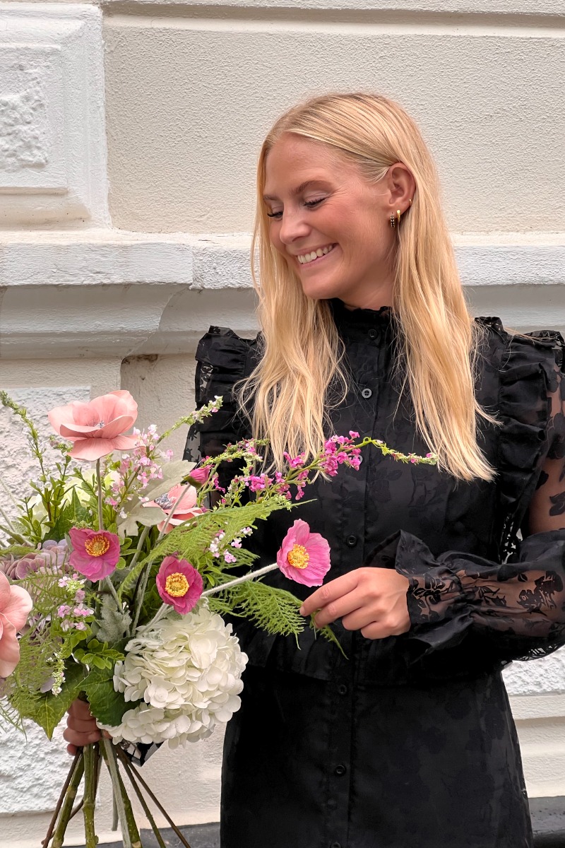 Se lige denne smukke sag af en kjole - den er fra vores eget brand Loved by Lykke og kan bruges både til hverdag og fest. Den er med knapper foran og er derfor også ammevenlig. De smukke ballonærmer med en lille flæse kant som den tæt halsudskæring gør den bare så elegant i udtrykket. den er foret så den ikke er gennemsigtig og findes også i en hvid farve.