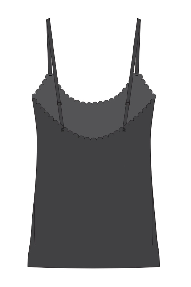 Denne top fra Loved by Lykke er lavet i den lækreste glatte og bløde tætsiddende kvalitet med stretch. Den har justerbare stropper og er PERFEKT under både dine hverdagsstyles og festkjoler. Toppen er som smurt på kroppen uden synlige kanter men afsluttes med en fin lille bølgekant der giver en feminin detalje, hvis man ønsker at bruge den under en blazer alene.