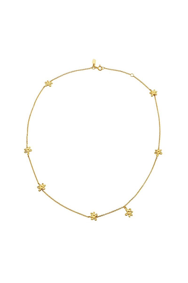 Den sødeste halskæde fra Maanesten! Den er med små fine guld blomster og er med justerbar kæde. Derudover er der et tilhørende armbånd til, så du kan skabe et smukt sæt.