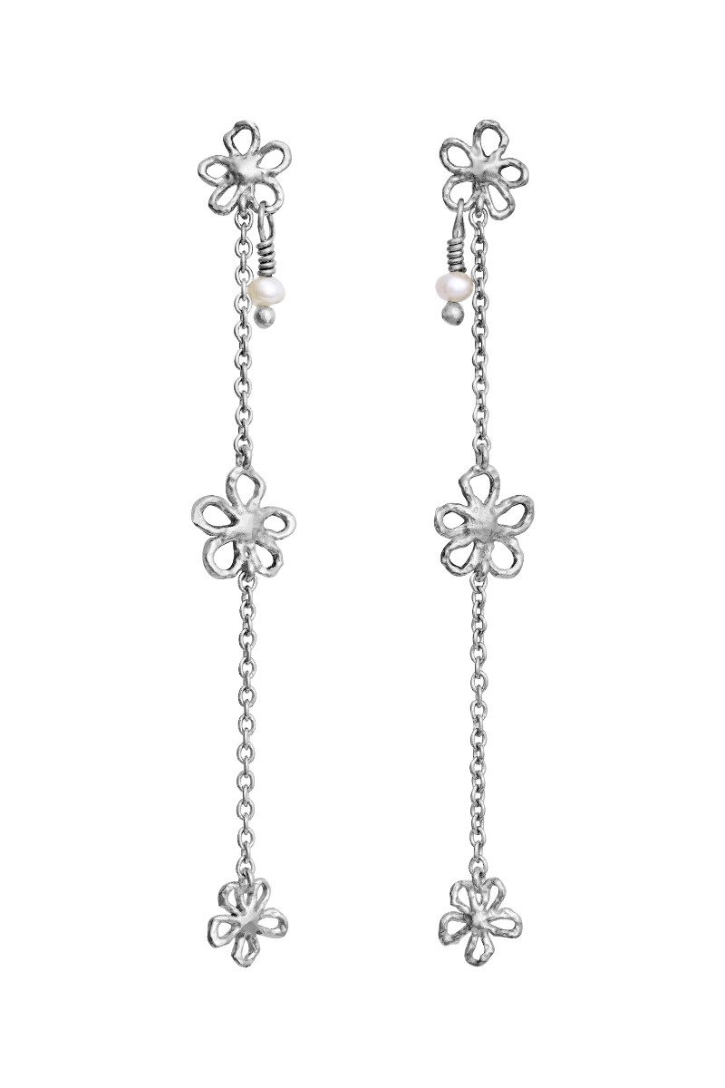 Et par smukker ørering i sølv fra Maanesten. De har motiver med blomster. Derudover har de en fin perledetalje.