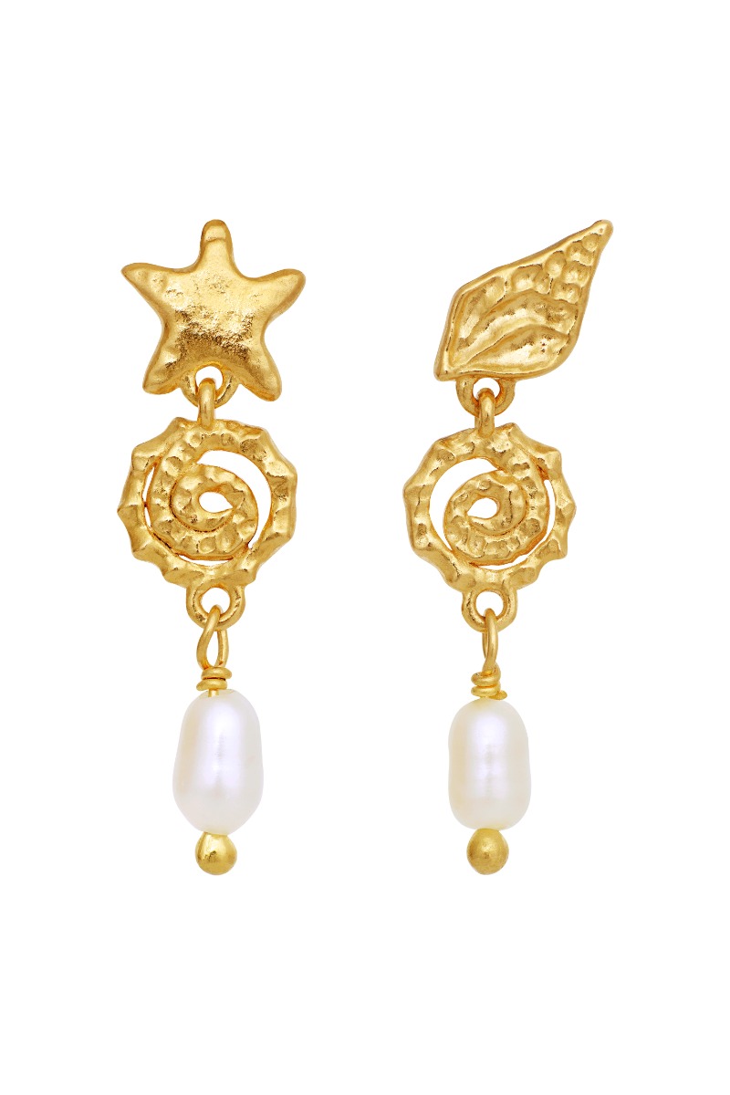 Mega fin lille ørestik fra Maanesten med vedhæng som forestiller muslingeskaller og konkylier og med en lille sød hvid perle i bundet. Giver den dejligste og fineste sommerfornemmelse