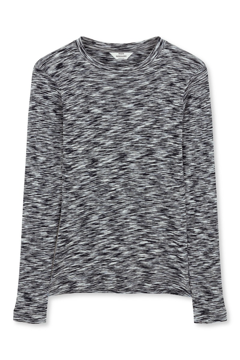 Mads Nørgaard - Bluse - 2x2 Cotton Space Tuba Tee LS - Multi Black