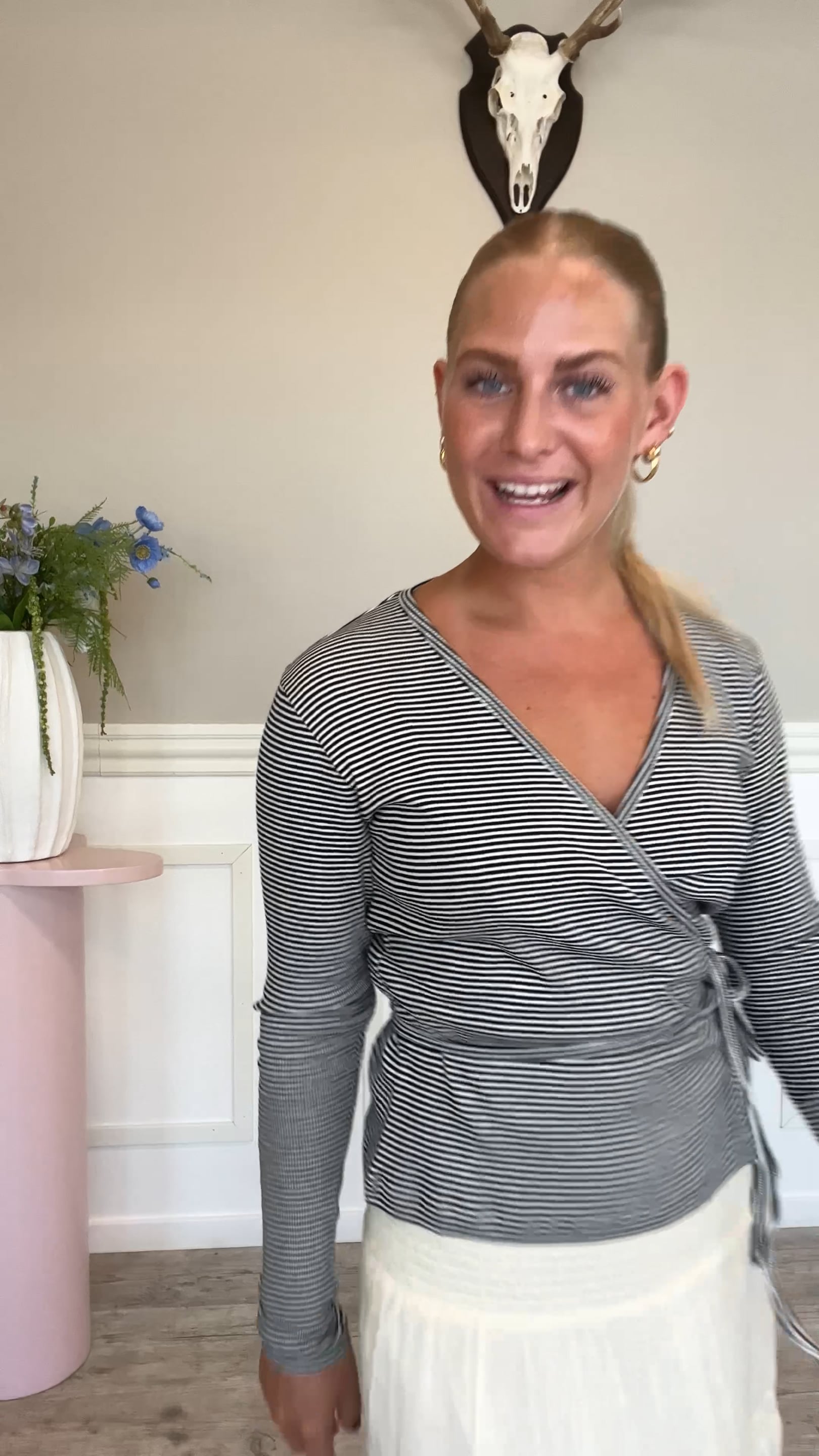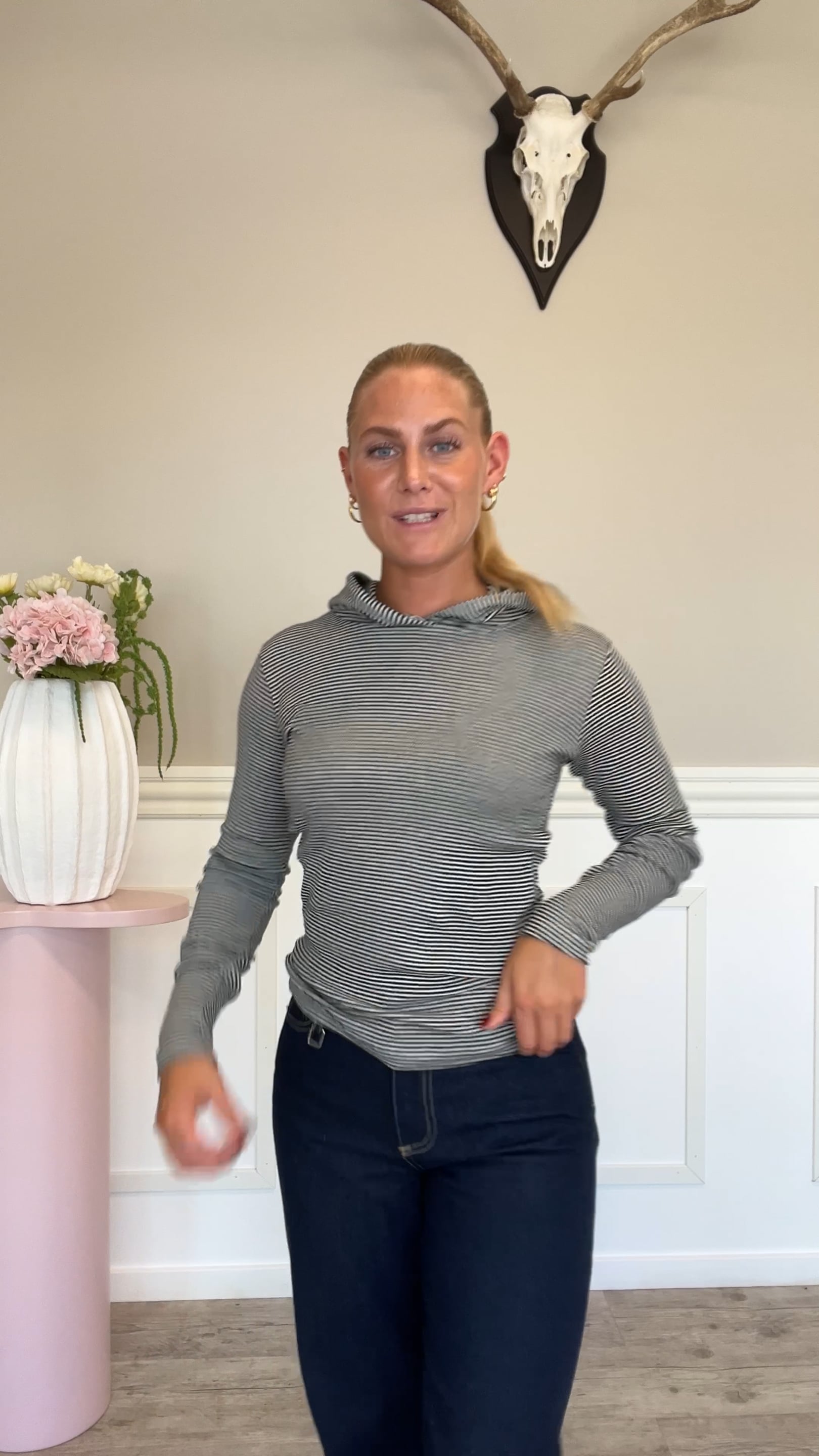 En super cool bluse fra Mads Nørgaard i en fin stribe og en lækker kvalitet. Denne bluse har en hætte, og så er den bare super behagelig at have på.