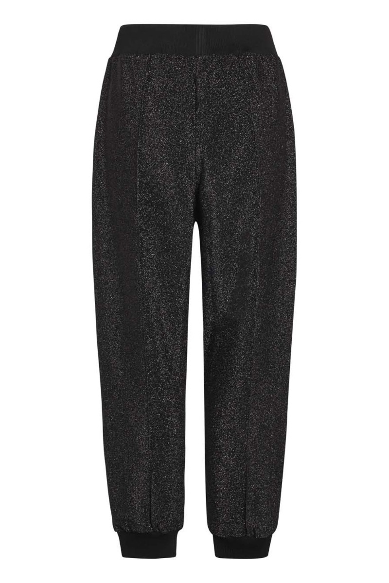 GLITTER GLITTER GLITTER! Vi elsker sweat og nu er det landet med glimmereffekt fra Mads Nørgaard - det bliver jo ikke bedre! Disse sweatpants er løse med et fold foran og en bred ribkant ved talje og ankel der giver den helt perfekte pasform. Brug bukserne med den matchende sweat for et afslappet glimmerlook eller style med en blazer, stilet og top for et rigtig fashion-fest-look.