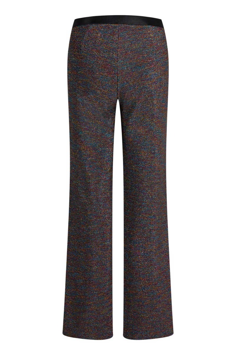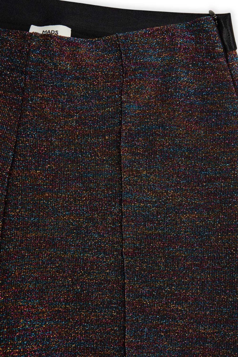 Skønneste bukser fra Mads Nørgaard der er vævet til det mest multi glitrende stretchy metallic stof. Bukserne er løse med boot-cut og pressefoldsyning foran. De har fast linning foran og elastikkant bagtil der gør dem behagelige at have på med en skjult lynlås i siden. Style dem med matchende kjole eller mere enkelt til en sort blazer og farvet stilet.