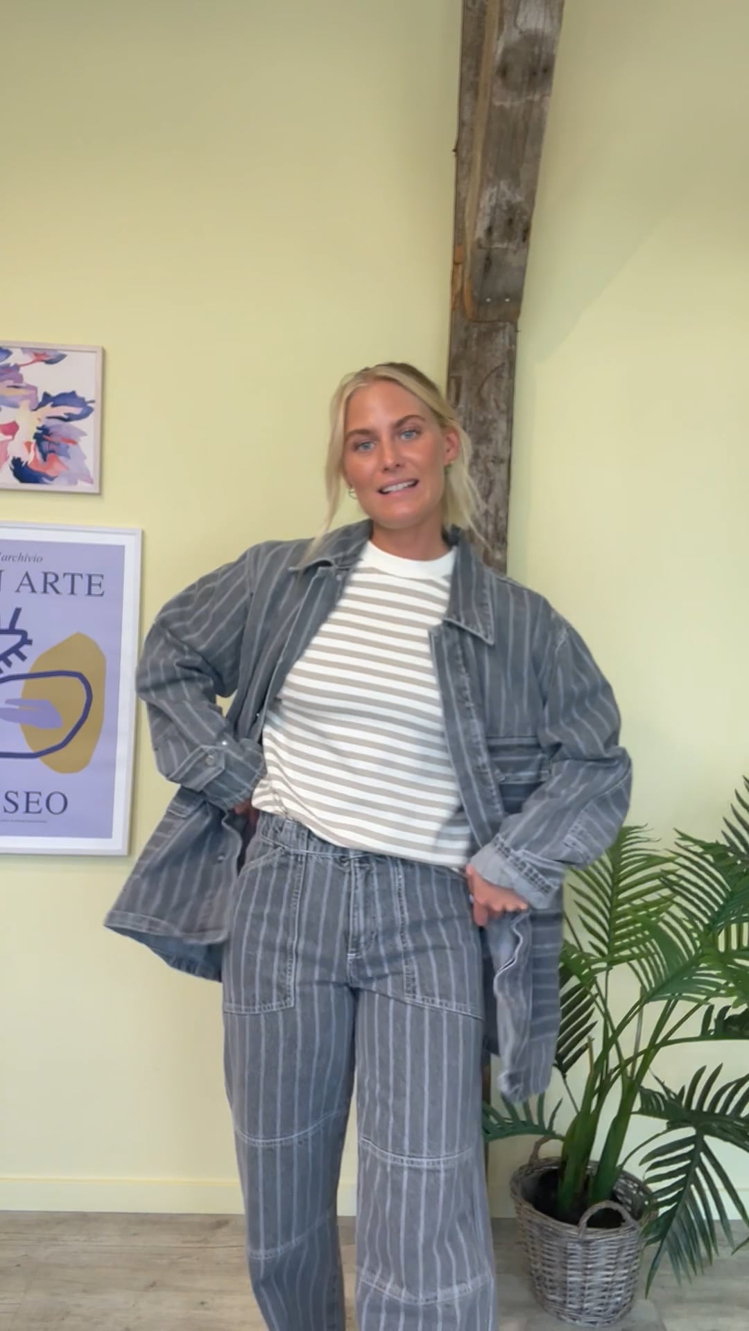 WOW, vi er helt forelsket i det nye denimsæt fra Mads Nørgaard i de velkendte modeller. Disse denim jeans er i en sej løs pasform med grå baggrund og lyse striber der giver en cool detalje. Style dem med den matchende denim jakke i samme mønster.