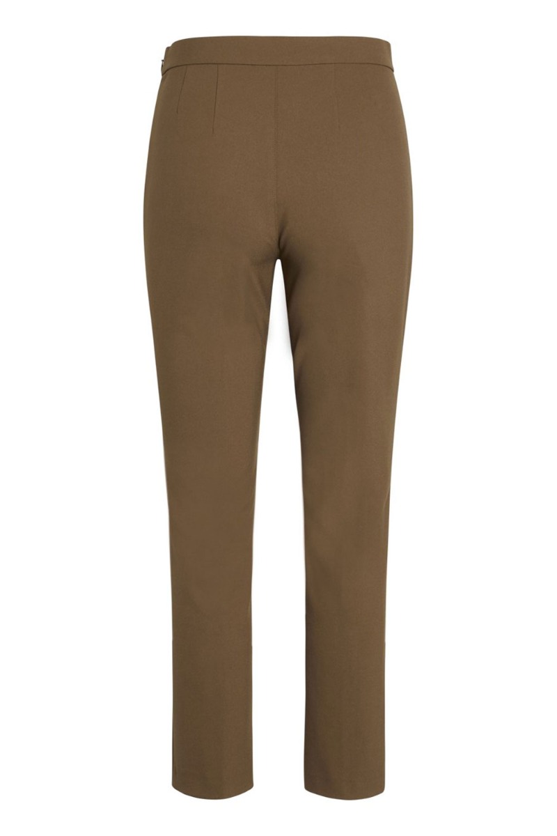 Klassiske bukser fra Mads Nørgaard med fast linning og skjult lynlås i taljen. Bukserne er helt tætsiddende med stretch og pressefold foran der giver et "pænt" look. De er en smule cropped der gør dem perfekt både til sandaler, sneaks eller en støvle.