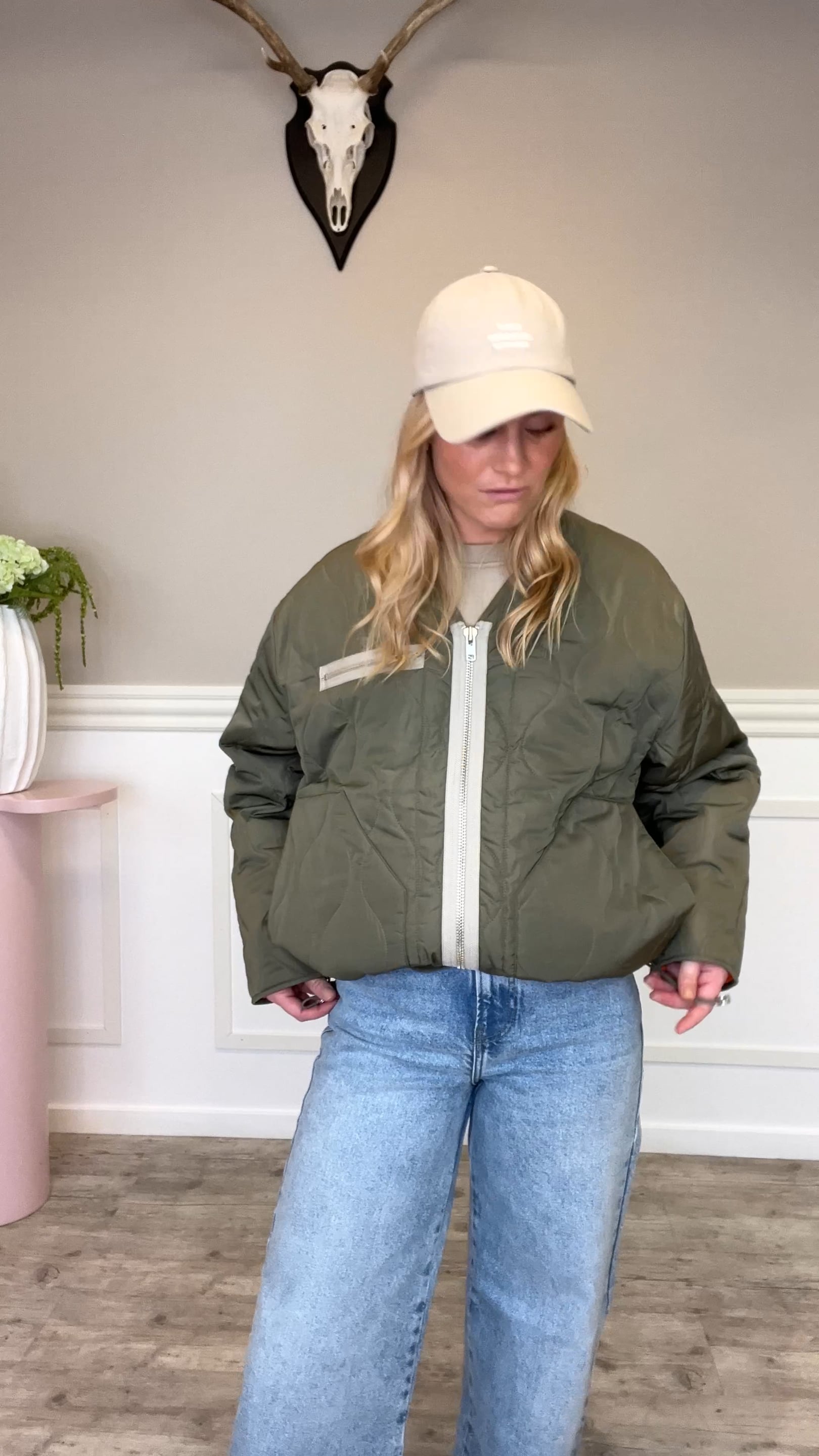 En super fin jakke er landet fra Mads Nørgaard i denne quiltede kvalitet, som bare er så behagelig og luner godt. Jakken har beige lynlåsdetaljer, hvilket står godt til den grønne farve. Denne jakke er perfekt som overgangsjakke og til ethvert outfit!
