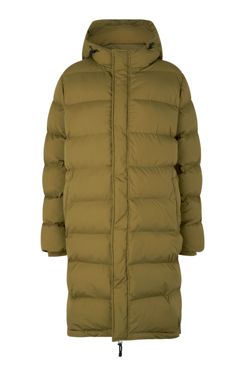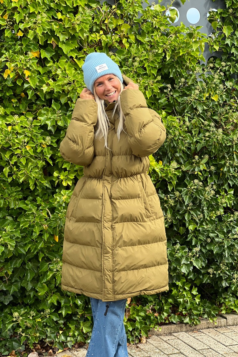 Lækker dynejakke fra Mads Nørgaard i en cool grøn nuance. Jakken har et lækkert puffet look og en kvalitet som kan holde dig varm hele vinteren. Den har en rummelig og lige pasform i et knælangt snit. Den har lynlås, høj hals, lommer, snøredetaljer ved hætte og ribkant ved ærmerne. Derudover er den lavet i 100% genbrugspolyester og er i et bæredygtigt materiale fra yderst til inderst. En perfekt vinterjakke i en klassisk farve, som holder sæson efter sæson.