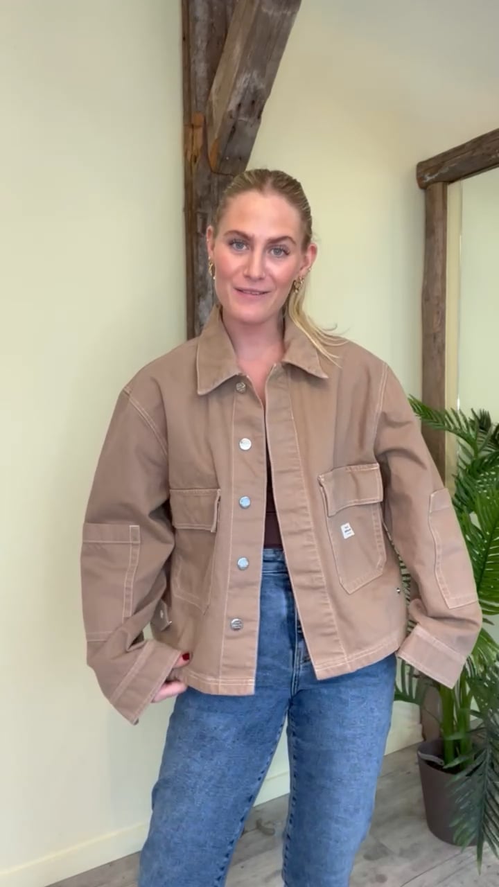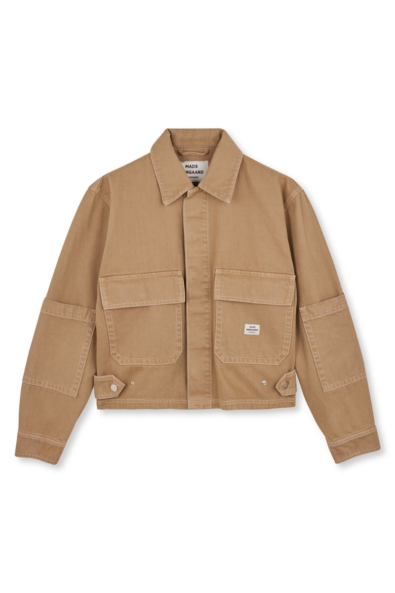 Den sejeste jakke fra Mads Nørgaard i en smuk brun nuance. Jakken er kort i modellen og har to store lommer foran samt et lille hvidt Mads Nørgaard logo på den ene lomme. Derudover er der også lommedetaljer på ærmerne og en trykknap i ærmerne. Style den til den matchende nederdel for et fuldendt cool look.