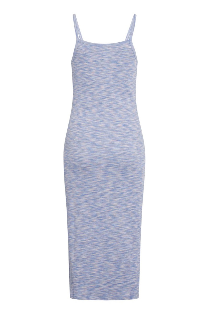 Skøn kjole fra Mads Nørgaard i en lækker rib kvalitet med masser af stræk. Kjolen har en kropsnær pasform med tynde stropper og en lille v-udskæring. Den er super behagelig at have på og kan sagtens bruges med en babybule til de varme sommerdage også. Style den alene eller med en oversize skjorte over.