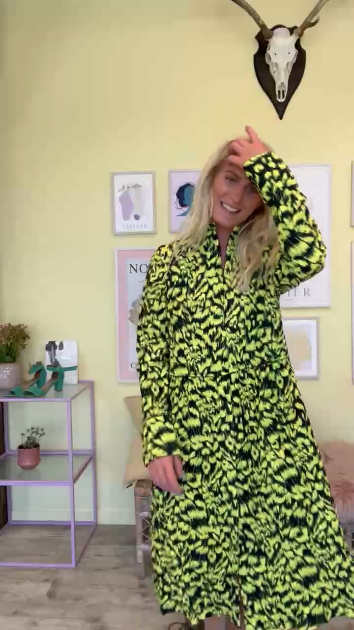 Vi elsker virkelig denne model fra Mads Nørgaard og nu er den designet i det sejeste print med neon detaljer. Kjolen har en god pasform med talje i en løs model. Foran ved den runde hals har den lynlås ned til taljen, hvilket gør kjolen ammevenlig og kan give en sej detalje til dit look. Den er lavet i en behageligt crepet materiale, der ikke krøller!