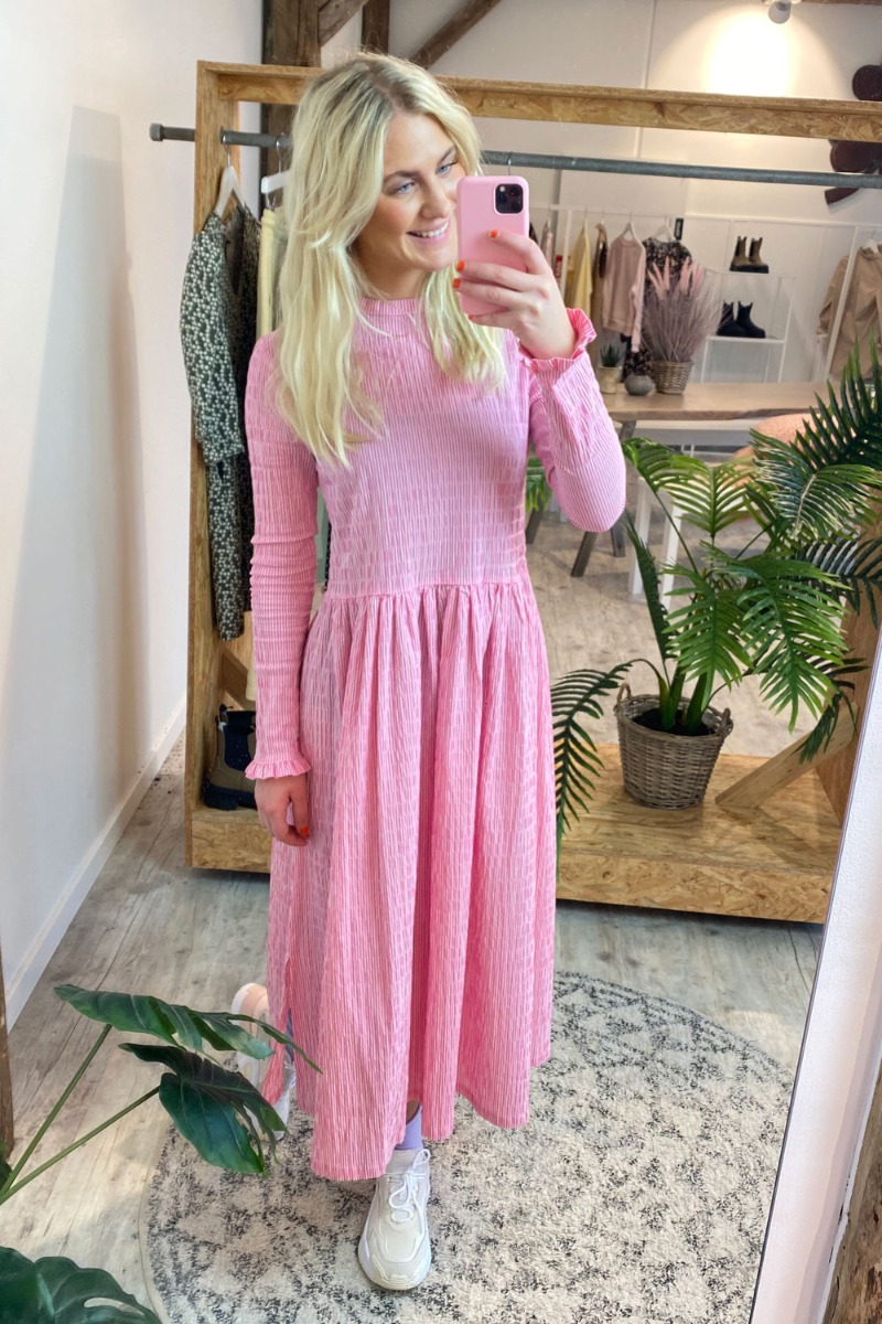 Mads Nørgaard - Kjole - Crinckle Pop Docca - Pink/White