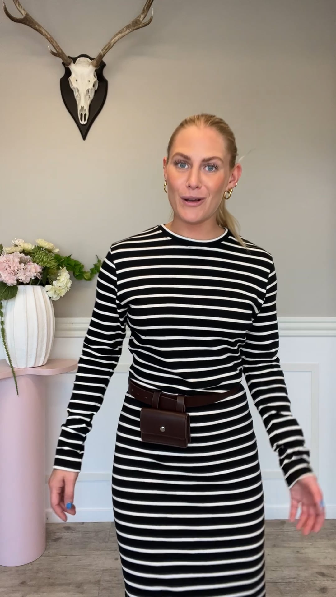 En skøn kjole fra Mads Nørgaard er kommet med de klassiske striber i sort og hvid. Den er i en lækker blød kvalitet og ahr masser af stræk og er derfor også god til en gravidmave. Den er perfekt til hverdag med en strik til og til dine favorit sko.