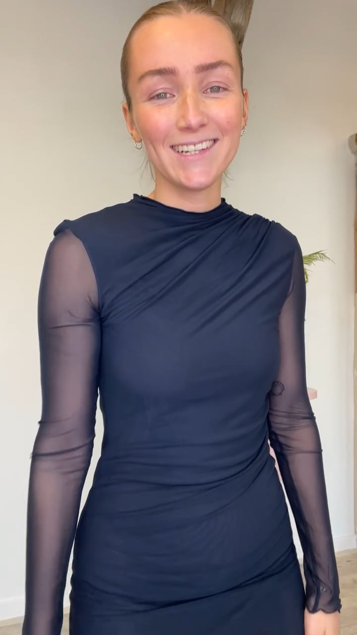 En virkelig fin kjole fra Mads Nørgaard i en flot navy farve! Denne kjole er lavet i et mesh materiale, med en underkjole og rynkedetaljer. Den er helt perfekt til fest, men kan også sagtens styles til hverdag med en strik over og et par sneakers!