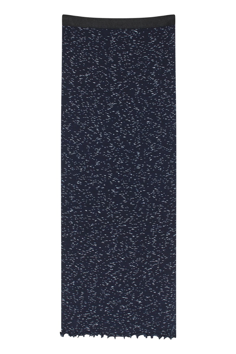 Den lækreste nederdel fra Mads Nørgaard. Den er i den lækreste ribkvalitet og med et fast stykke elastik i taljen og en lille bølgekant forneden. Den er mørkeblå med hvide "stjerner" på og du kan finde matchende bluse til, så du kan skabe et helt sæt.