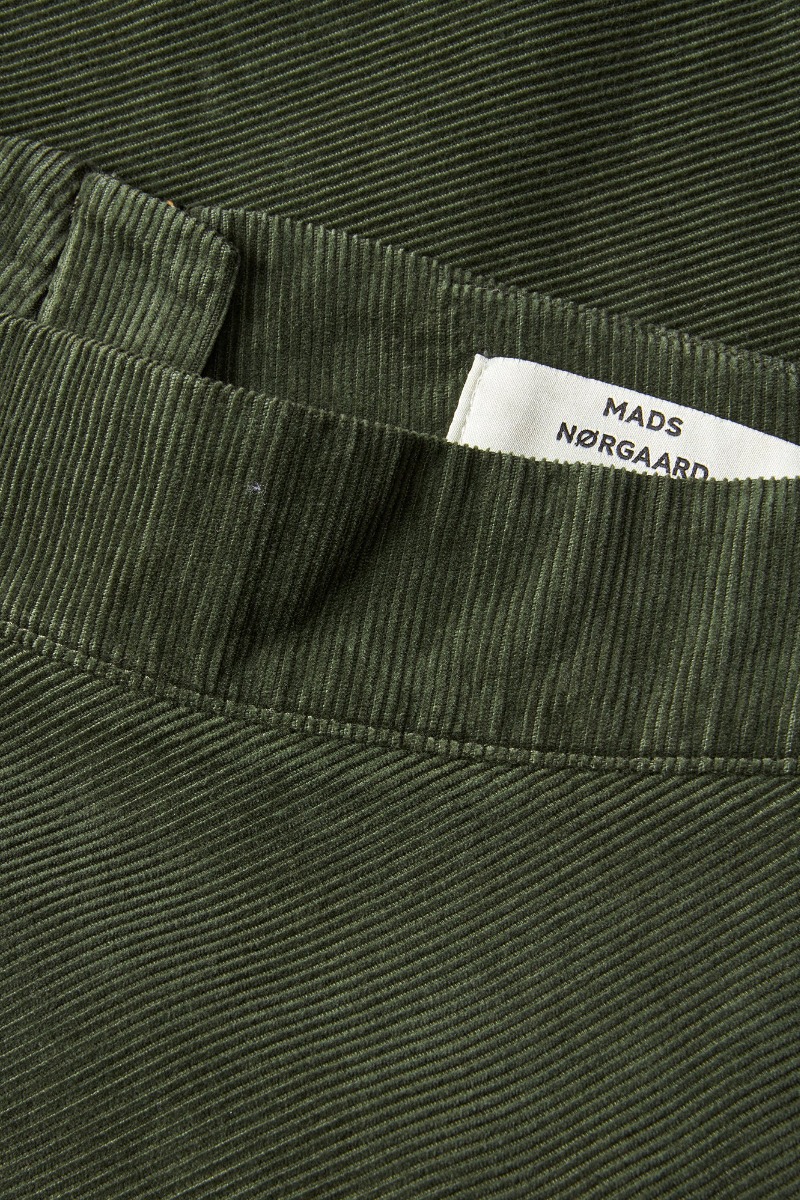 En utroligt fin nederdel fra Mads Nørgaard er landet i den flotteste grønne farve. Nederdelen er i et fløjlsmateriale, og er derfor super blød. Den har et A-snit, lommer foran og lynlås bagi.