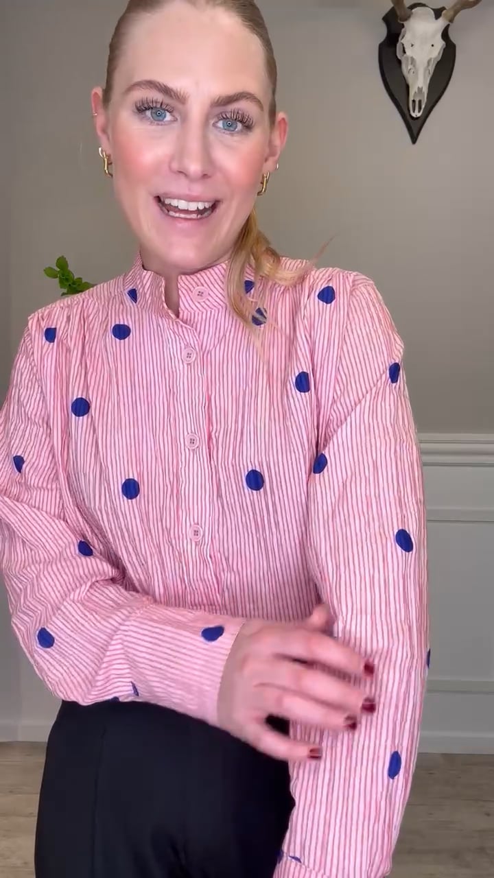 En virkelig sød og utrolig fin skjorte er landet fra Mads Nørgaard i den fineste lyserøde farve med striber i en mørkere nuance samt mørkeblå prikker, som en super sej kontrast! Denne skjorte er i den lækreste kvalitet, og er derfor også super behagelig at have på. Brug din både til hverdag og festlige anledninger!