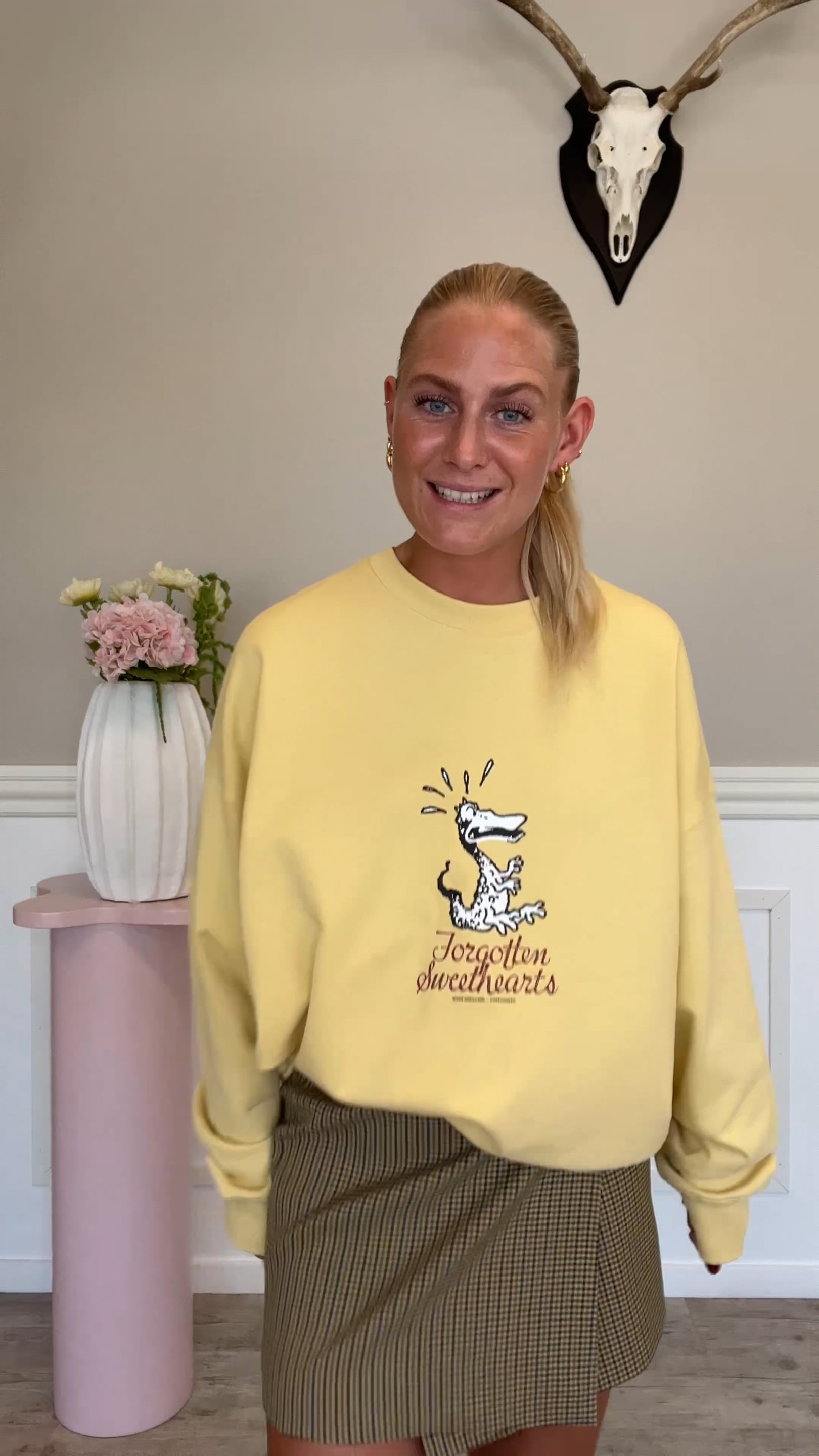 En super fin sweatshirt fra Mads Nørgaard i den fineste gule farve og søde print! Denne sweatshirt har en lækker, rummelig pasform og er super behagelig at have på. Style den til et par jeans!