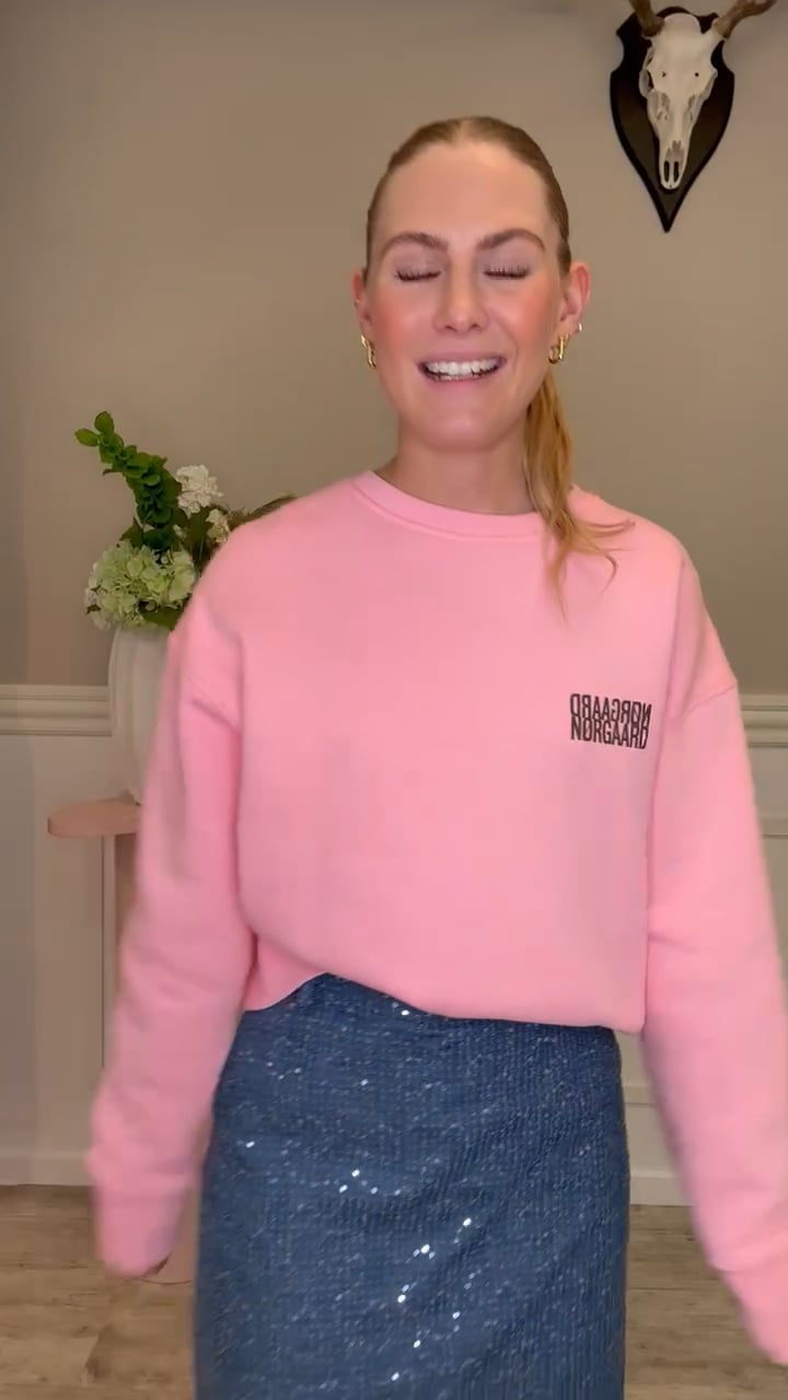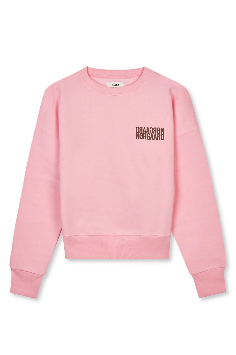 Denne sweat fra Mads Nørgaard kan du have på med god som vittighed. Den er lavet i 100% økologisk bomuld og er så dejlig. Den har en klassisk pasform med rund hals og lange ærmer. Foran har den et ikonisk logo i en flot brun farve, som bare giver den fedeste kontrast til det lyserøde!