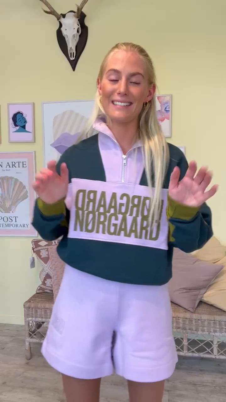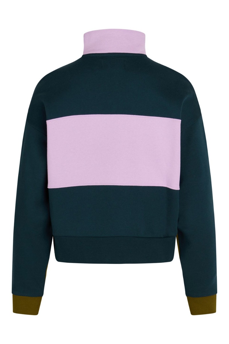 Her har vi så bare den sejeste sweatshirt fra altid seje Mads Nørgaard. De mørke block farver der brydes med feminint og sart lyselilla, det er bare en perfekt combo og så cool. Sweatshirten har højhals og kan åbnes halvt ned foran med en lynlås. Derudover afssluttes den med ribkant ved begge ærmer, og har den brede pasform i bunden så den ikke kravler op i løbet af dagen.