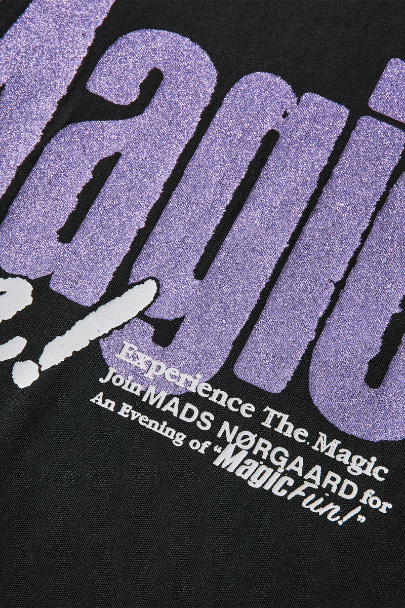 En virkelig sej t-shirt er landet fra Mads Nørgaard i denne vaskede, sorte farve. Den har et fedt print foran hvor der står "Magic" i lilla med glimmer. Det giver t-shirten et virkelig cool udtryk. Brug den til et par jeans eller shorts!