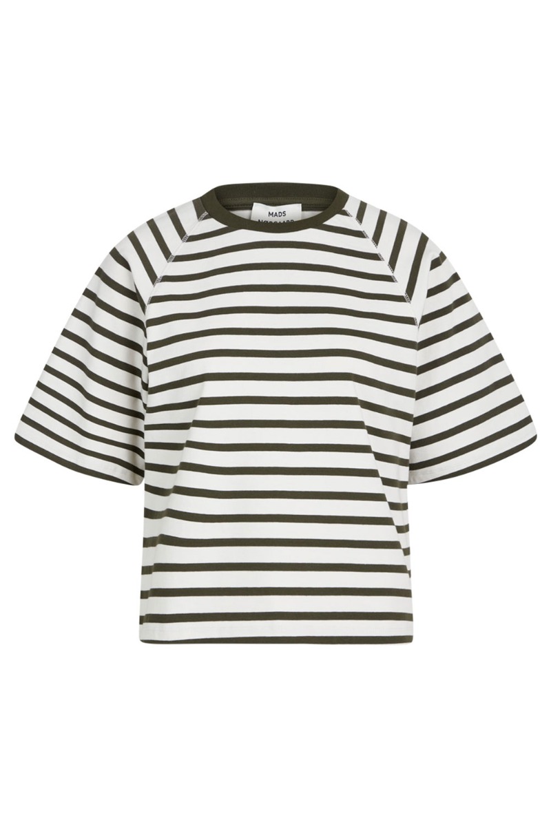 Mads Nørgaard - T-shirt - Heavy Single Stripe Trista Tee - Snowwhite/Forest Night