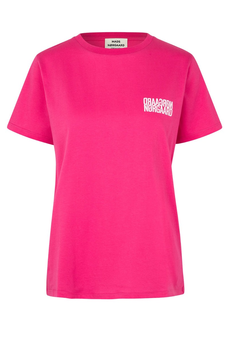 PINK t-shirt fra Mads Nørgaard med rund hals og korte t-shirtærmer. Den er i en skøn behagelig kvalitet med et lille Mads Nørgaard logo i siden. Den er nem at style til hverdagen med jeans eller nederdel til.