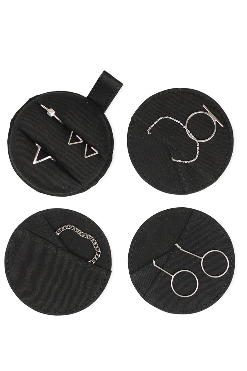 Et super smart smykkeskrin fra Markberg du nemt kan have med på farten! Den indeholder 4 flade smykkepuder med små lommer hvor du kan putte dine smykker i og nemt have dem alle samlet og med dig. Denne smykketaske fåes i en mindre også alt efter hvor mange smykker du vil have med dig.