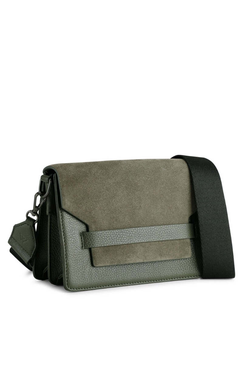 Utrolig smuk enkel taske fra Markberg i grøn. Tasken er designet med læder og ruskind der giver en cool kombination. Den har mange smukke detaljer der er baseret på naturlige materialer. Teksturen i farven kan variere, hvilket er læderets naturlige karakteristika. Tasken har tre store rum med små indvendige rum til alle dine småting. Finley stroppen kan justeres og har en ekstra medfølgende læder strop med der kan give et mere feminint udtryk.