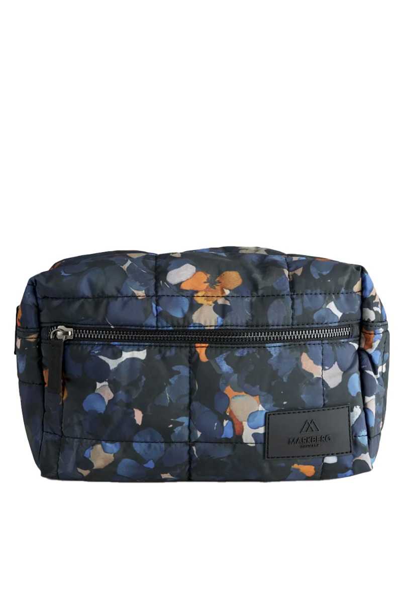 Lækker quiltet toilettaske fra Markberg i et skønt farverigt blomsterprint. Den har to separate lynlåsrum og med lomme bagtil. Den er designet i et slidstærkt og vandafvisende materiale.