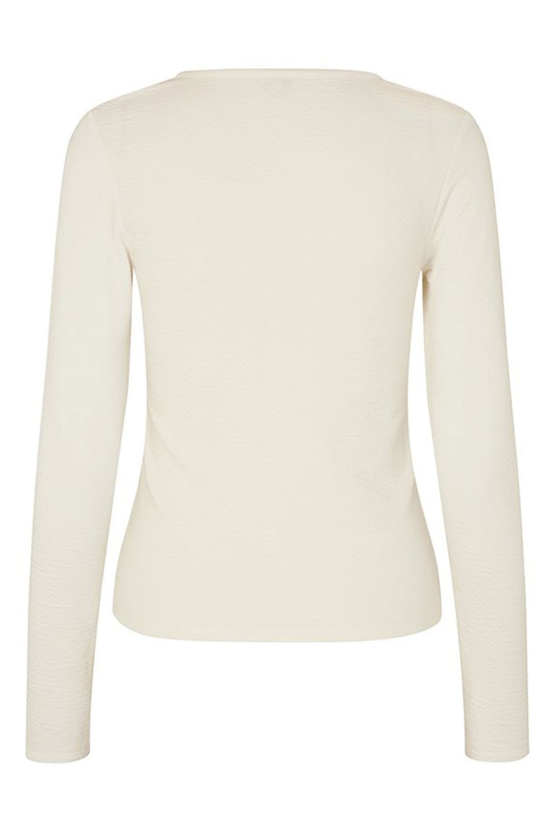 En fin enkel bluse fra MbyM i hvid med sølv lynlås foran med v-udskæring. Den har struktur i stoffet og er så blød behagelig at have på. Style den både til hverdag og festlig brug.
