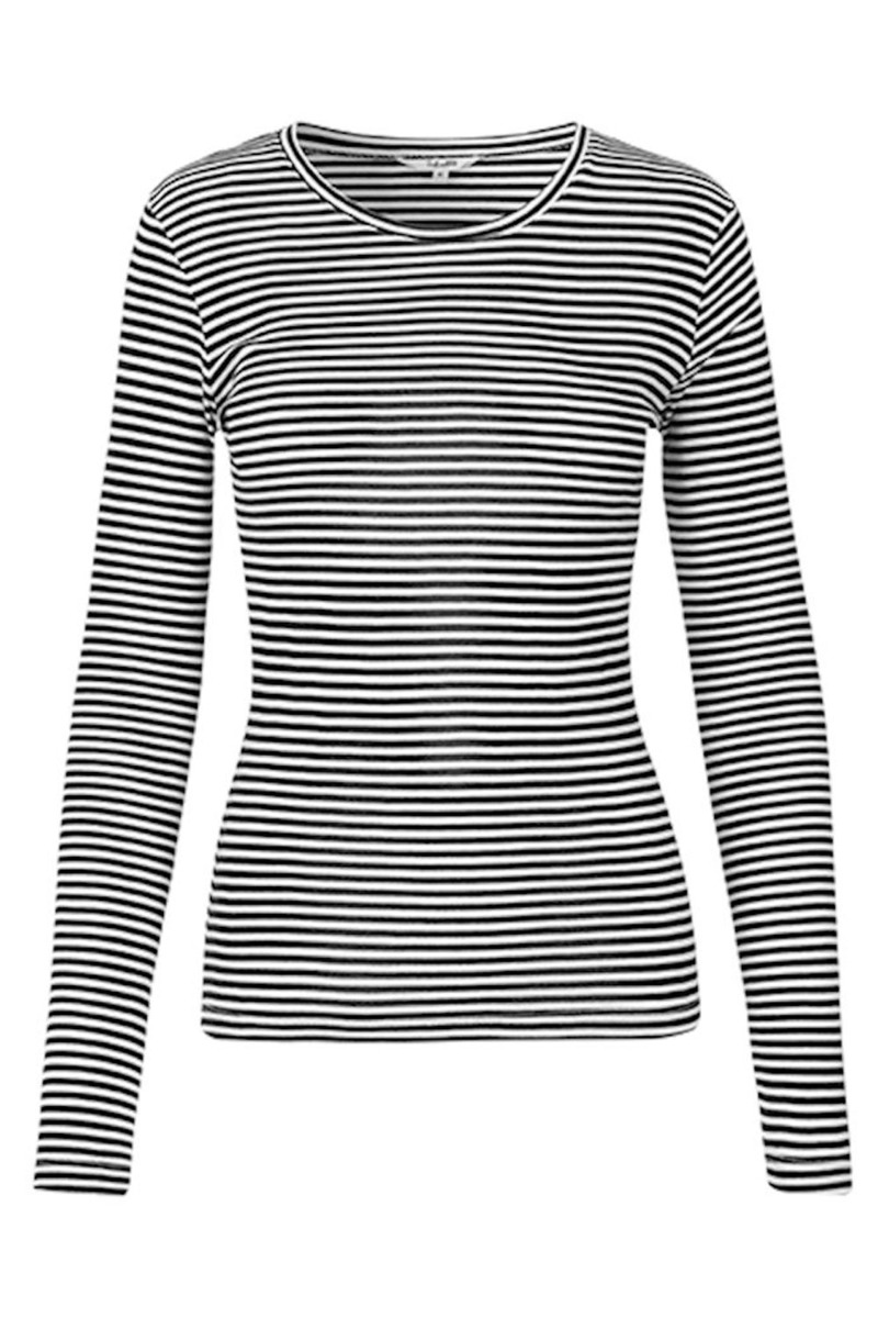 Enkel stribet bluse i et utrolig blødt materiale, der ikke krøller! Blusen er lettere tætsiddende med masser af stræk og rund halsudskæring. Style den helt klassisk med et par højtaljet jeans eller til en feminin nederdel.
