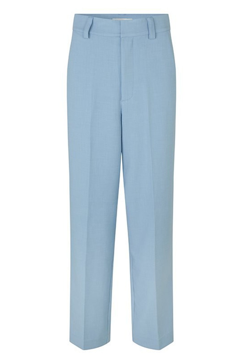 Klassiske blazer bukser fra MbyM i blå melleret nuance. Bukserne har pressefold foran og er højtaljet. De sidder super godt og er lige i benene hvilket gør dem feminine med en stilet og blazer.