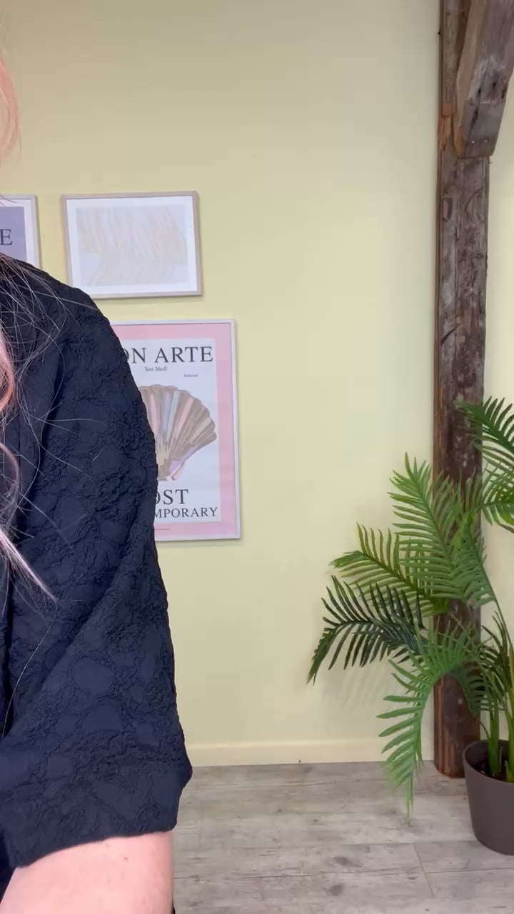 Super fine bukser fra MbyM med struktur i stoffet. Bukserne har et løst siddende snit i en klassisk sort farve. De er behagelige i kvaliteten og med elastik i taljen. Style bukserne med den matchende t-shirt i samme farve og struktur for et fuldendt look. Sættet findes også i en smuk blå farve.