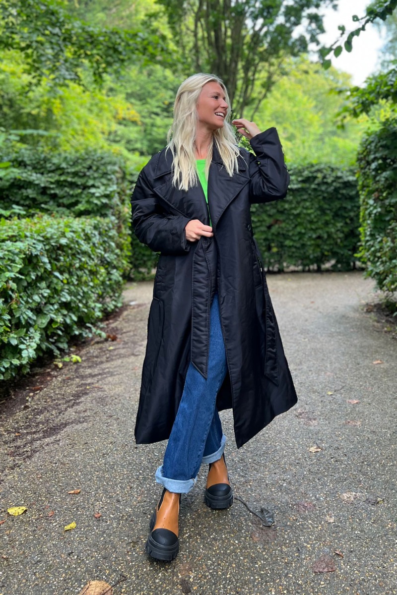 Oversize jakke fra MbyM i et cool kvalitet. Jakken er lang og rummelig med aftagelig bælte i livet samt spænder ved de lange ærmer der nemt kan justeres. Den lukkes foran med en enkelt knaplukning der giver et cool fashionlook.