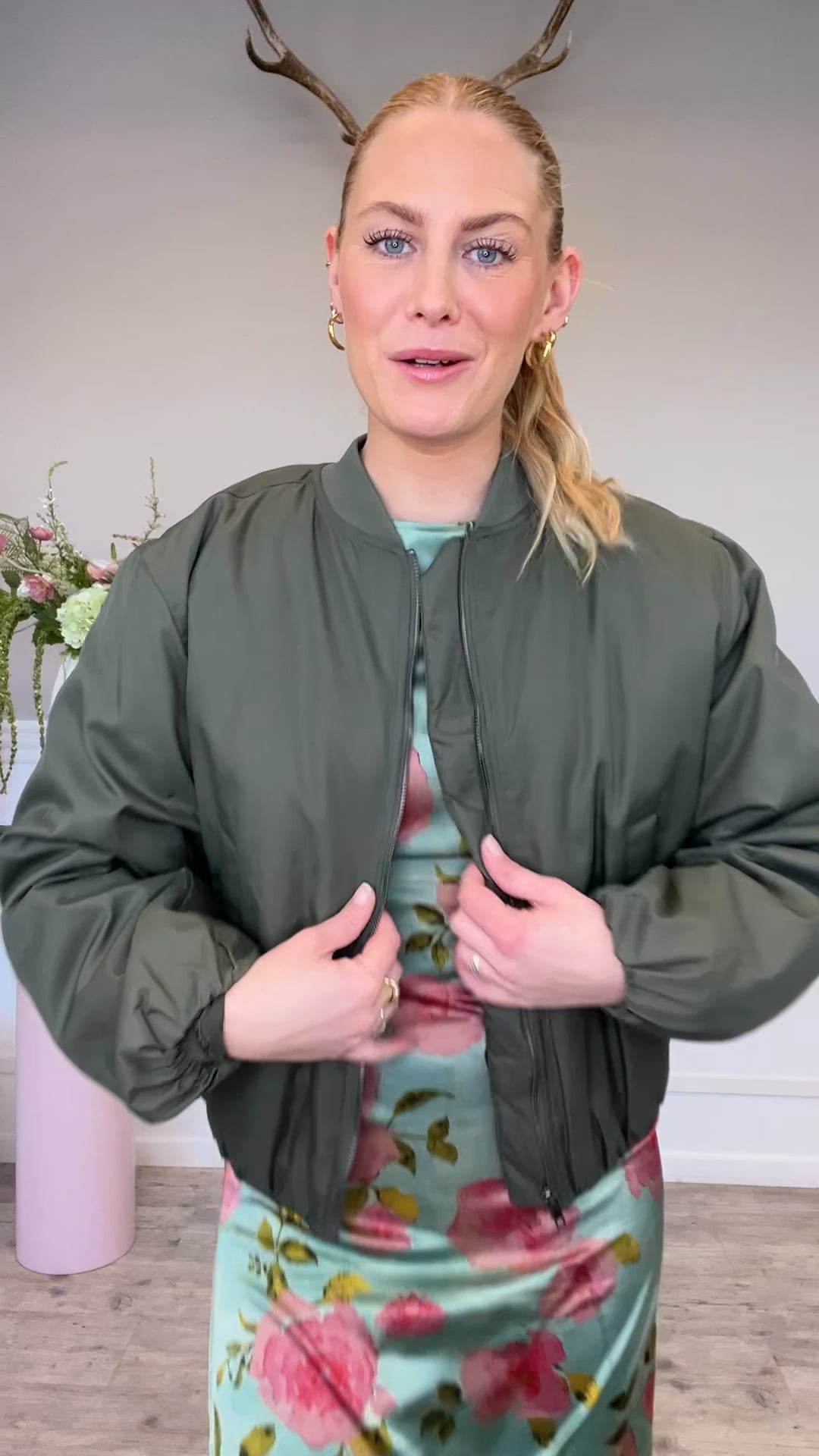 Bomberjakken er altså ved at lave sit comeback og her er mbyM's bud på en model til denne sæson. Den er i en smuk khaki frave som passer til alt! Og den lukkes foran med en lynlås hvor den også ender i denne kinakrave. Den er rummelig og kan sagtens rumme en sweatshirt under.